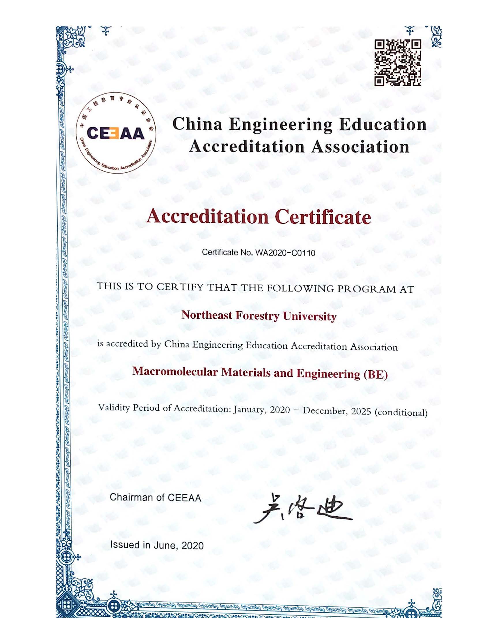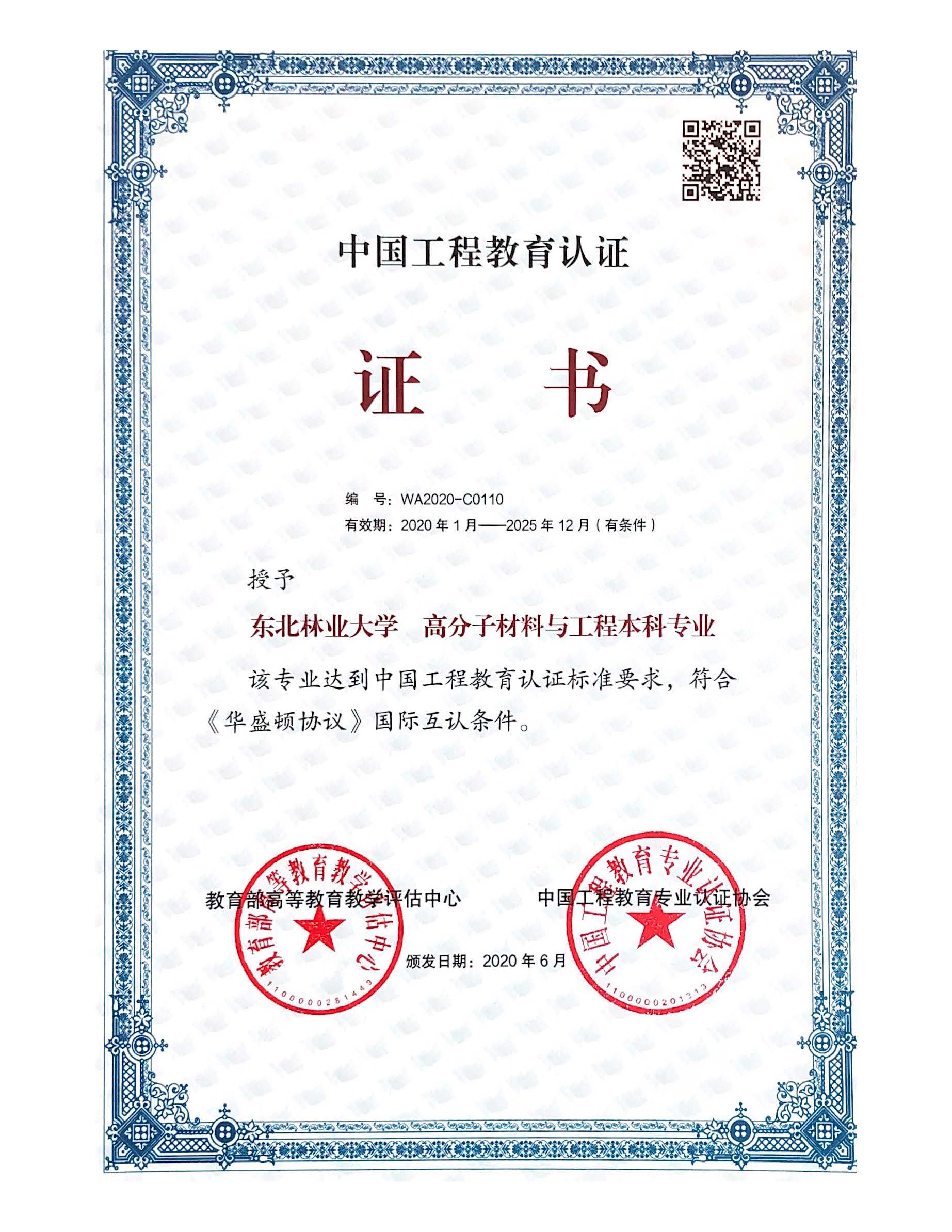 高分子材料与工程专业通过中国工程教育认证