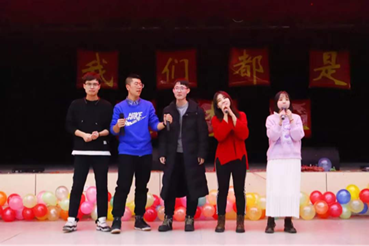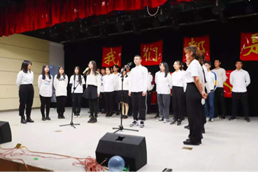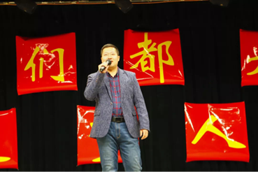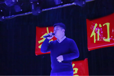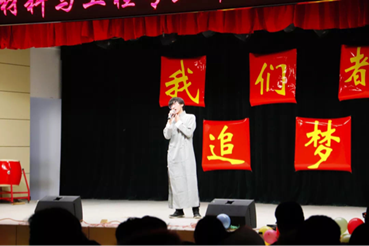 让我实现一生抱负,摘下梦中满天星,把心声写给青山听,漫漫长路远冷冷幽梦清,万水千山独行找我登天路径。高分子专业邸明伟老师的歌声满含了对同学们的期望,质朴亲切,现场同学们纷纷合着拍子为老师鼓掌。歌曲间奏邸明伟老师祝愿全体师生新年快乐。