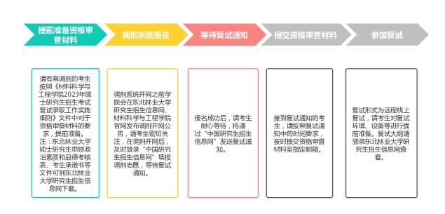 资格审查材料提交时间:待教育部调剂系统开通后,通过调剂系统报名我院,并收到我院通过调剂系统发送的拟复试通知后。请各位考生按照《必赢626net入口首页硕士研究生招生考试复试录取工作实施细则》中对资格审查材料的要求提前准备。