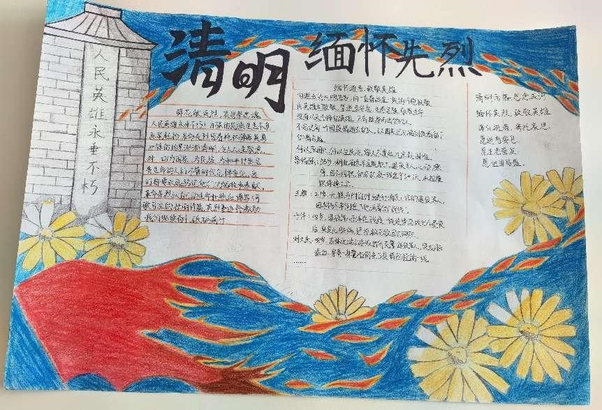 在活动中,同学们充分利用互联网学习了革命先烈和抗疫英雄们的英勇事迹,并用手中的画笔在纸上绘制出英雄们在中华民族生死存亡的关键时刻顽强奋斗的故事。同学们以自己的方式走近革命先烈,走近无名英雄,把真诚的祝福送给如今依旧在抗疫前线的“逆行者”们。在绘制手抄报的过程中,同学们深刻地体会到:在艰苦卓绝的革命战争年代,革命英烈们对中华民族伟大复兴的执着追求,以及为此而舍身忘我的英勇献身精神。这些精神始终是激励我们奋勇前进的强大动力。疫情当下,我们更应该以身作则、众志成城,同防疫一线的工作者们一同打赢这场没有硝烟的战“疫”。