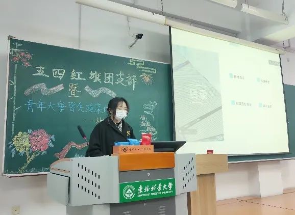 两名主持人对评选条件进行介绍讲解,而后分别由两位曾经带领班级团支部获得五四红旗团支部殊荣的团支书同学进行经验分享。她们分别是来自20级林产化工二班团支书谢林珊和19级木材科学与工程卓越班团支书刘莹莹。