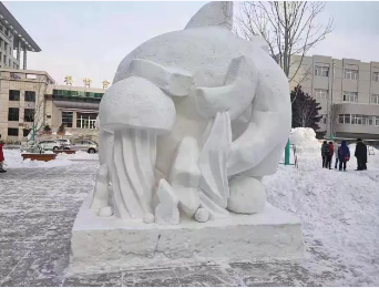 积极组织带领学院同学参与此次雪雕比赛