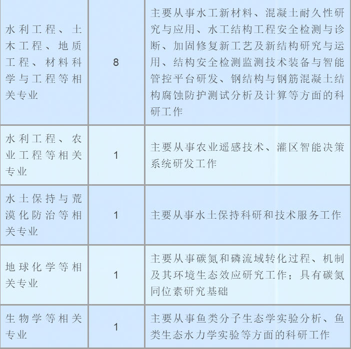 南京水利科学研究院2023年公开招聘(校园招聘)事业编制工作人员岗位表