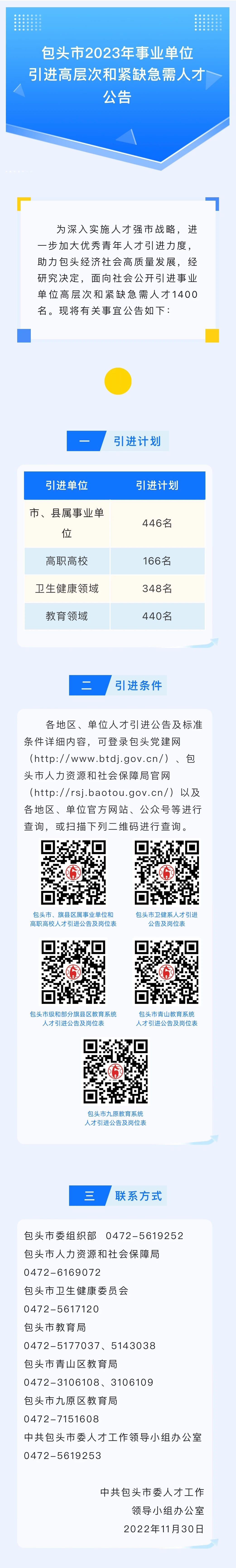 人才引进 | 人才引进1400名!包头市2023年事业单位引进高层次和紧缺急需人才公告
