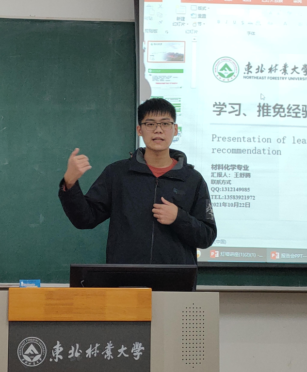 首先上台分享的是2018级材料化学一班王舒腾学长