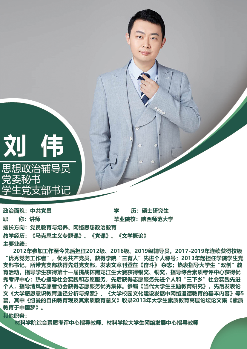 2012年参加工作至今先后担任2012级、2016级、2019级辅导员。2017-2019年连续获得校级“优秀党务工作者”,优秀共产党员,获得学院“三育人”先进个人称号;2013年起担任学院学生党支部书记,所带党支部获得先进党支部,发表文章刊登在《奋斗》 杂志;热衷指导大学生“双创”教育活动,指导学生获得第十一届挑战杯黑龙江生大赛获得银奖、铜奖,指导综合素质考评中心获得优秀考评中心;热心指导社会实践和志愿服务,先后获得志愿服务先进个人和“三下乡”社会实践先进个人,指导清风志愿者协会获得志愿服务优秀集体。参编《当代大学生主题教育研究》,先后发表论文《大学感恩意识教育途径分析与探索》、《大学校园文化建设发展中网络道德教育的基本内容》等5篇,其中《纽曼的自由教育观及其素质教育意义》收录2013年大学生素质教育高层论坛论文集《素质教育于中国梦》。