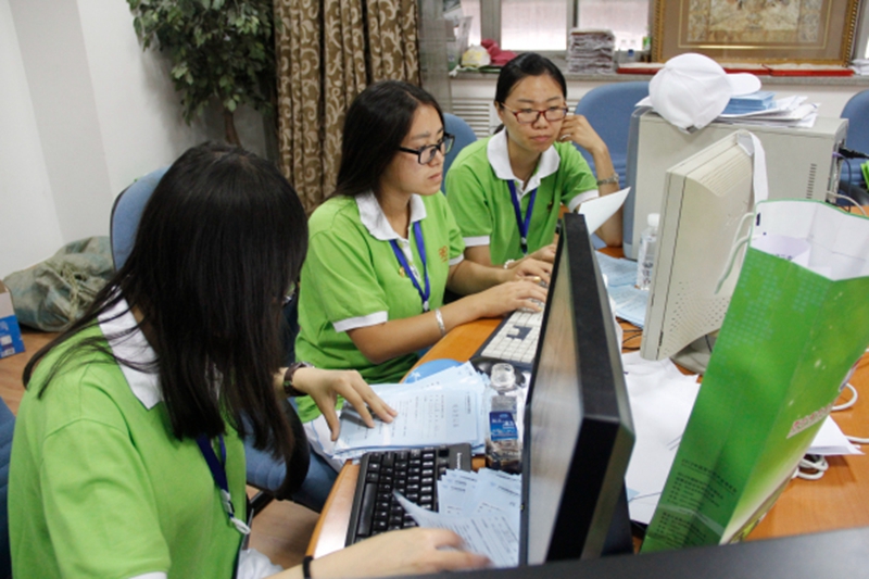 自8月18日起,2011级外国语学院毛文奇等10名同学放弃假期休息,提前投入到组委会的筹备工作中,从参展商的通知工作到会刊材料的编制印刷,他们克服工作强度大、工作任务紧等困难,积极投入到展前筹备工作中,他们的努力为大会的顺利举行提供了保障。9月1日上午,博览会如期开幕,我校51名志愿者全部到岗。在专项活动部工作的30余名志愿者主要负责高层论坛和项目发布签约会的准备工作,共发放近千余份会议材料,为17家企业组织了合同签约。服务于专项活动部的杨茗说“看着会场内我们布置的材料被参会人员仔细认真翻阅,看着那些需要帮助指引道路的参会人员正确入座,即使工作辛苦,但是内心充满欣慰和骄傲。”在招商联络部服务的20余名志愿者主要负责参展商产品信息的收集和参会观众信息的录入工作,3天共完成了3000余条信息的录入。由于任务繁重,他们每天只有半个小时的午饭时间,饭后就得立刻投入到工作中去。 “即使白天的展会结束,也要完成当天的工作任务再回学校,否则心里总不踏实”招商联络部的郭洪暄带着这份责任心,与其他志愿者们一起,在自己的岗位上坚守。