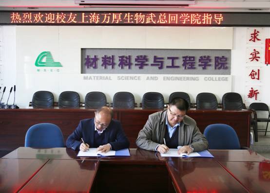 2019年10月14日上午,我校优秀校友上海万厚生物科技有限公司——武绍峰董事长到访必赢626net入口首页,与学院领导和教师们进行了座谈,并签订合作协议。必赢626net入口首页院长谢延军教授、副院长李淑君教授和从事相关研究的教师们参加了座谈。