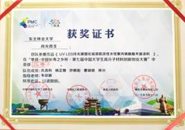 必赢626net入口首页高分子材料与工程专业的两个参赛作品《UV LED冷光源固化硅溶胶改性水性聚丙烯酸酯木器涂料》(指导教师韦双颖)和《环境友好型木粉/淀粉/聚乳酸三元可降解绿色塑料的应用》(指导教师张彦华)进入决赛。2019年10月16日,经过决赛激烈的角逐,两个作品均获得二等奖。