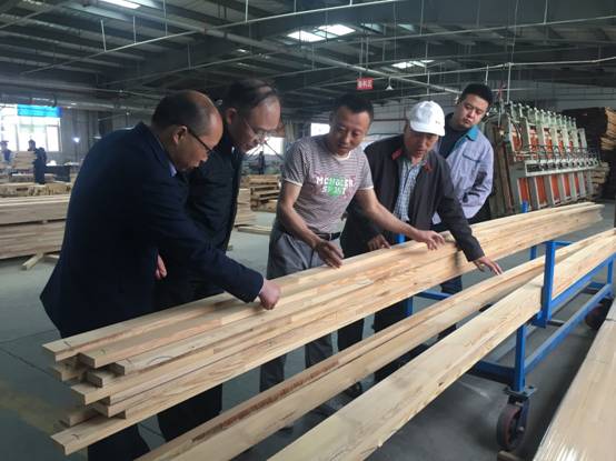 活动结束后,在马占岭副总经理的带领下,东林一行人员参观了该木业城的展品室、集成材加工厂、防腐木材处理厂和木材干燥基地等园区企业,并现场为企业工作人员解答相关技术问题。“中林木业大讲堂”是中林集团绥芬河国林木业城投资有限公司与东北林业大学签订的战略合作内容的一部分,后续将陆续推进双方产学研合作实质合作,以扩大我校“林业工程”国家双一流建设学科在木材工业的影响力。