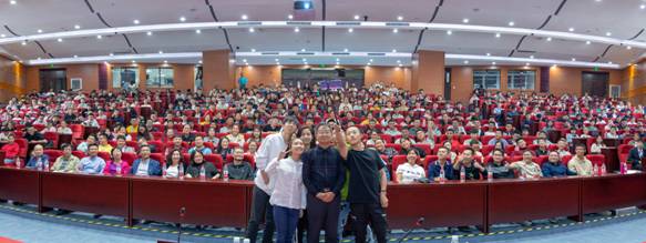 会后,2019级的新生送给李坚院士自己亲手绘制的“李坚院士画像”,作者介绍道,这是同学们眼中的李坚院士,平易近人、精神抖擞,还有几位热情的同学上台邀请李坚院士与所有参会师生合影。