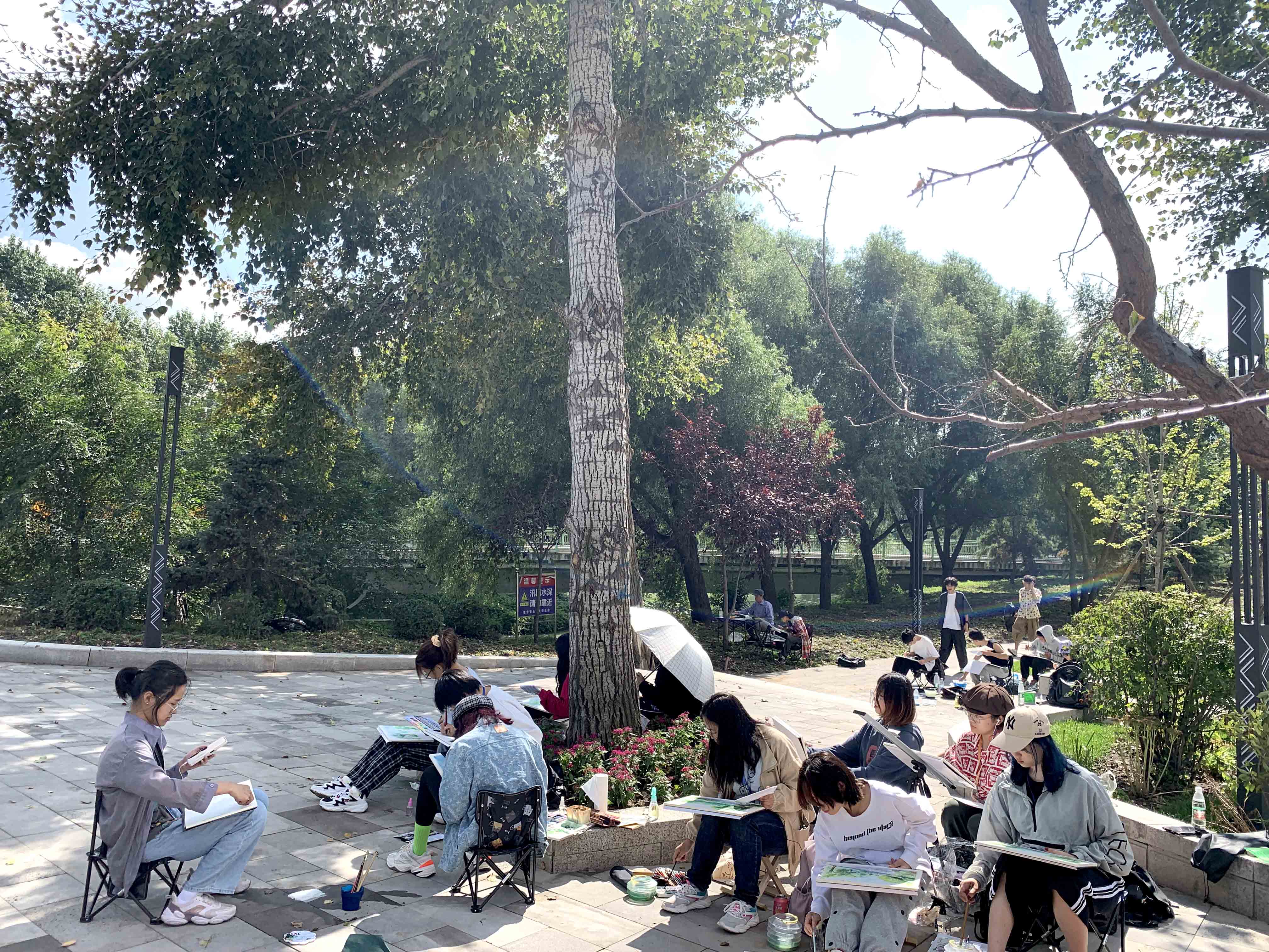 写生课程第一天,叶方老师首先针对本次实践课程的教学内容、绘画方法进行了全面系统的讲解,随后谭向东老师和王可心老师将课程的目的、意义与学生进行了深刻解读。