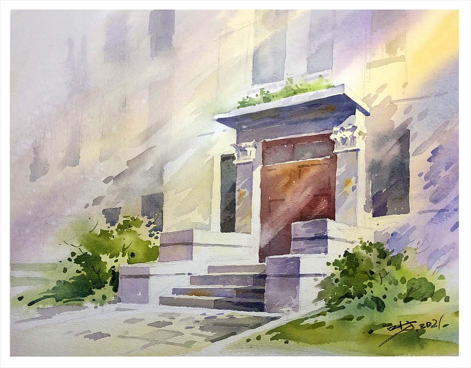 写生的对象多样化,有对单独的建筑的描写,也有对风景和建筑相结合的描绘,体现了建筑与人文、建筑与环境、建筑与生态的关系。同时也注意对大环境的整体观察和整体表现、每个季节都有属于每个季节独特的景色;此时又是个多雨的月份,天气气氛对画面会颇有影响,同一景物在不同的光照条件下可以形成完全不同的色调和气氛,这也可以锻炼学生们对色彩的掌控能力,可以更好的锻炼色彩感觉,与此同时,学生们也遇到了一些困难,例如:对素材的选取以及如何选景与确定构图;自然界中形象丰富、质感多样、气候、光线多变,如何处理好广阔与深远的空间关系等等,这都是风景写生需要解决的问题。