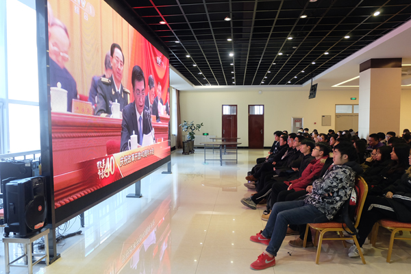 我校各二级党委分别组织教职工和学生收看、收听了开幕会直播。习近平总书记的讲话在广大师生中引起热烈反响。大家纷纷表示,处在改革开放的年代,我们既感到幸福,也有紧迫感,我们要以先进为榜样,更加紧密地团结在以习近平同志为核心的党中央周围,高举中国特色社会主义伟大旗帜,不忘初心,牢记使命,在各自的岗位上努力工作,为改革开放和学校的发展做出贡献。