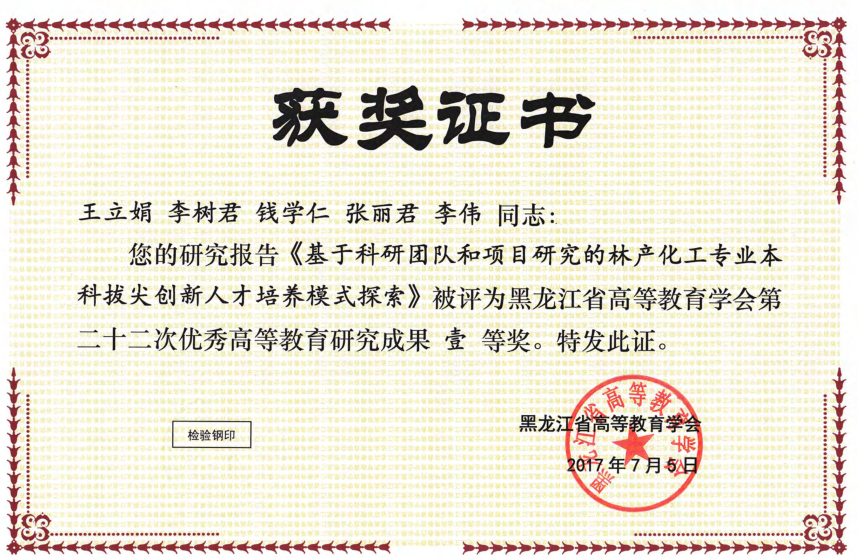 黑龙江省高等教育学会第二十二次优秀高等教育研究成果一等奖