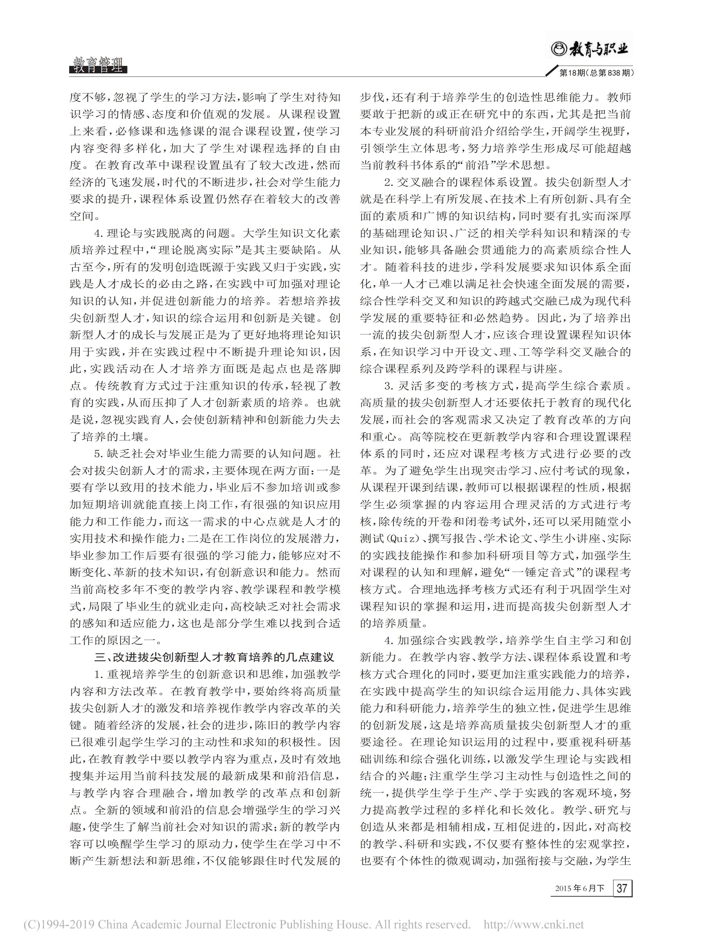 拔尖创新型人才教育培养中存在的问题与建议