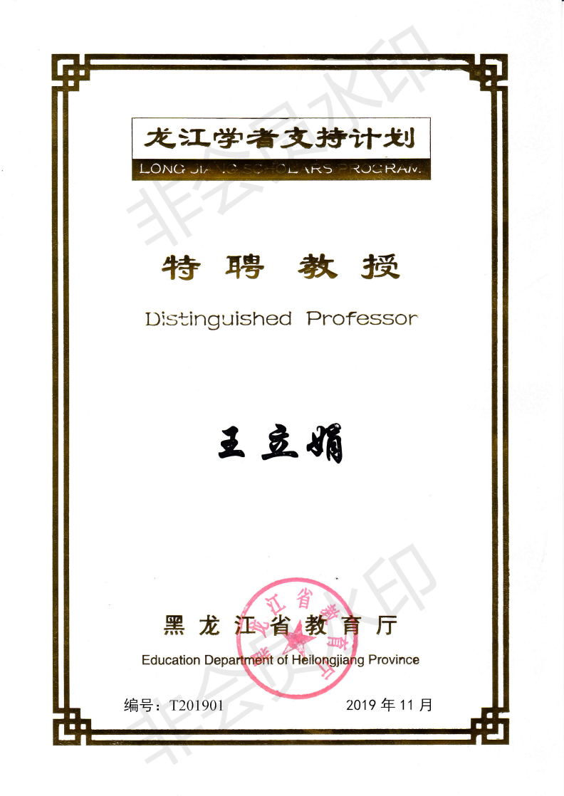 东北林业大学2018-2019学年十佳本科生导师荣誉称号(王立娟)