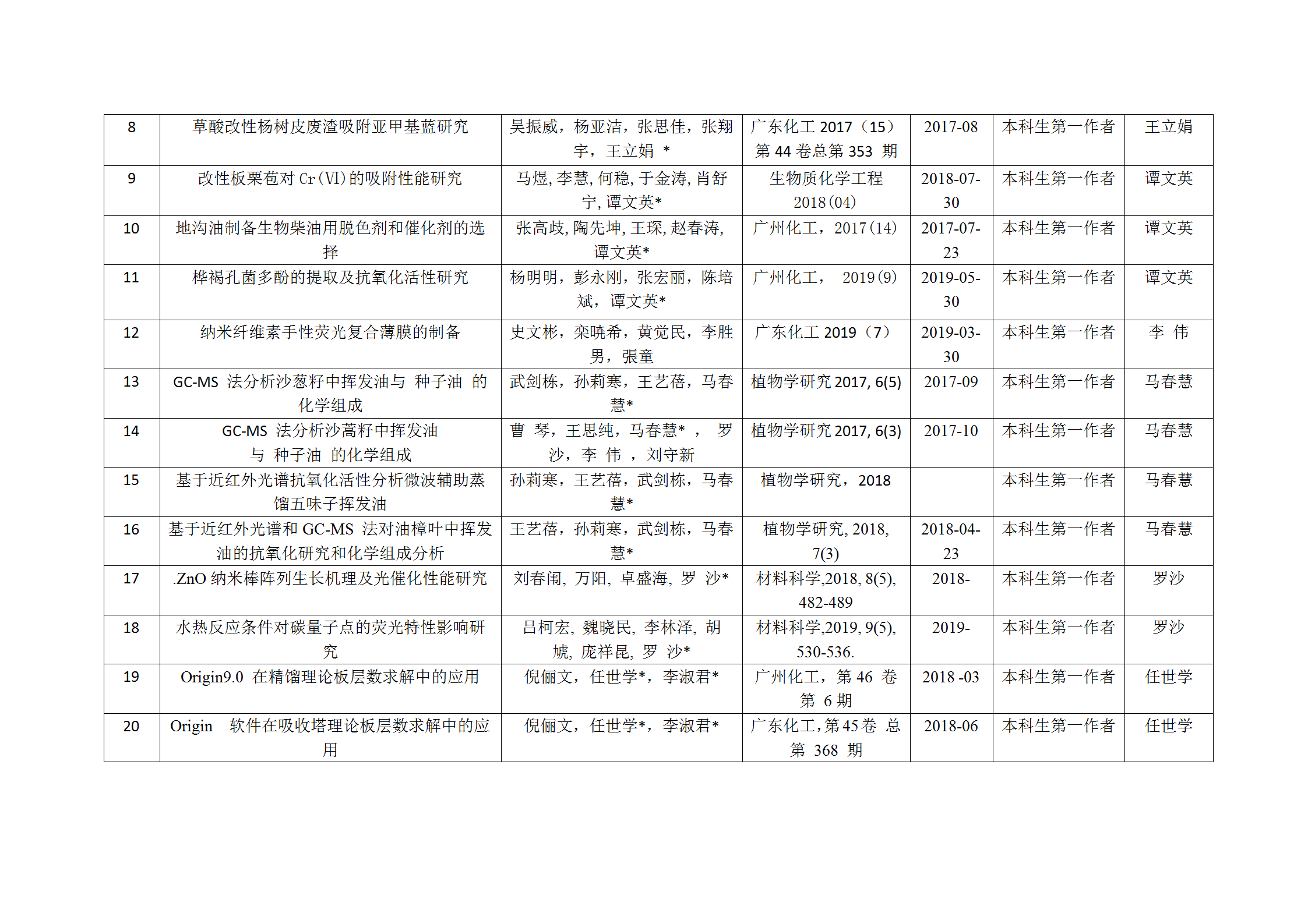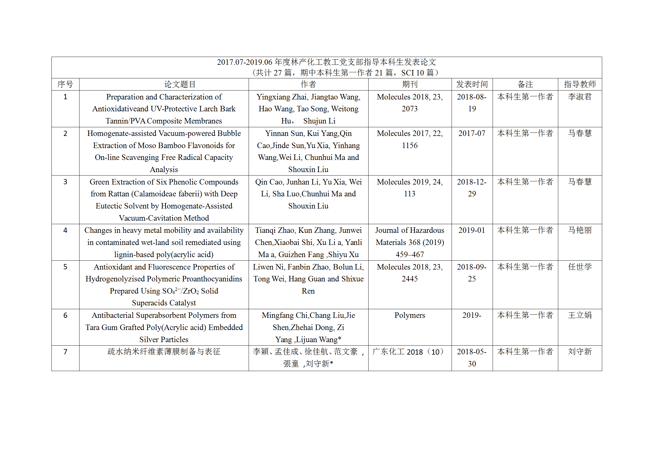 2017-2019年度林产化工教工党支部指导本科生发表论文