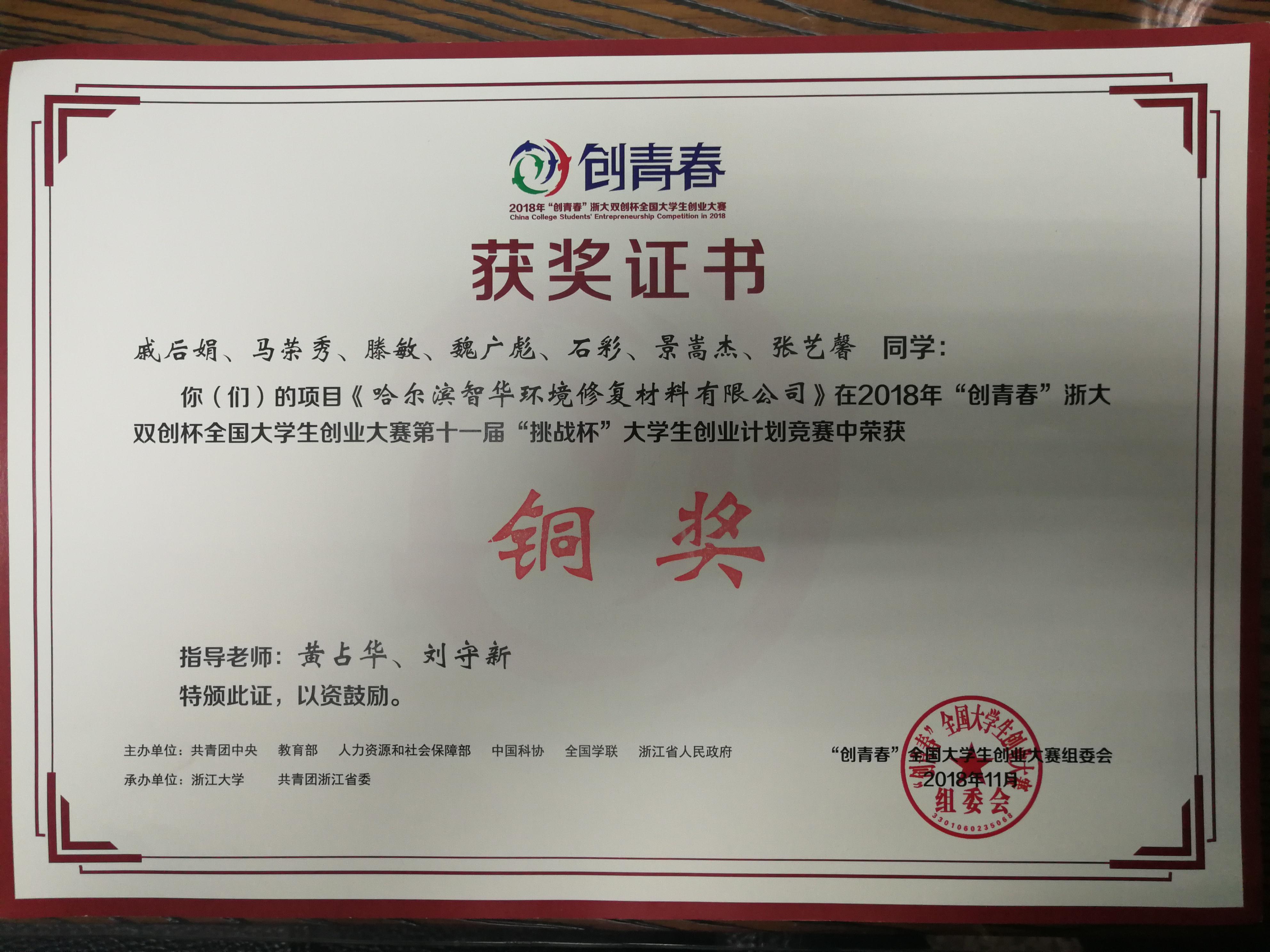 “建行杯”第四届黑龙江省互联网+大学生创新创业大赛三等奖