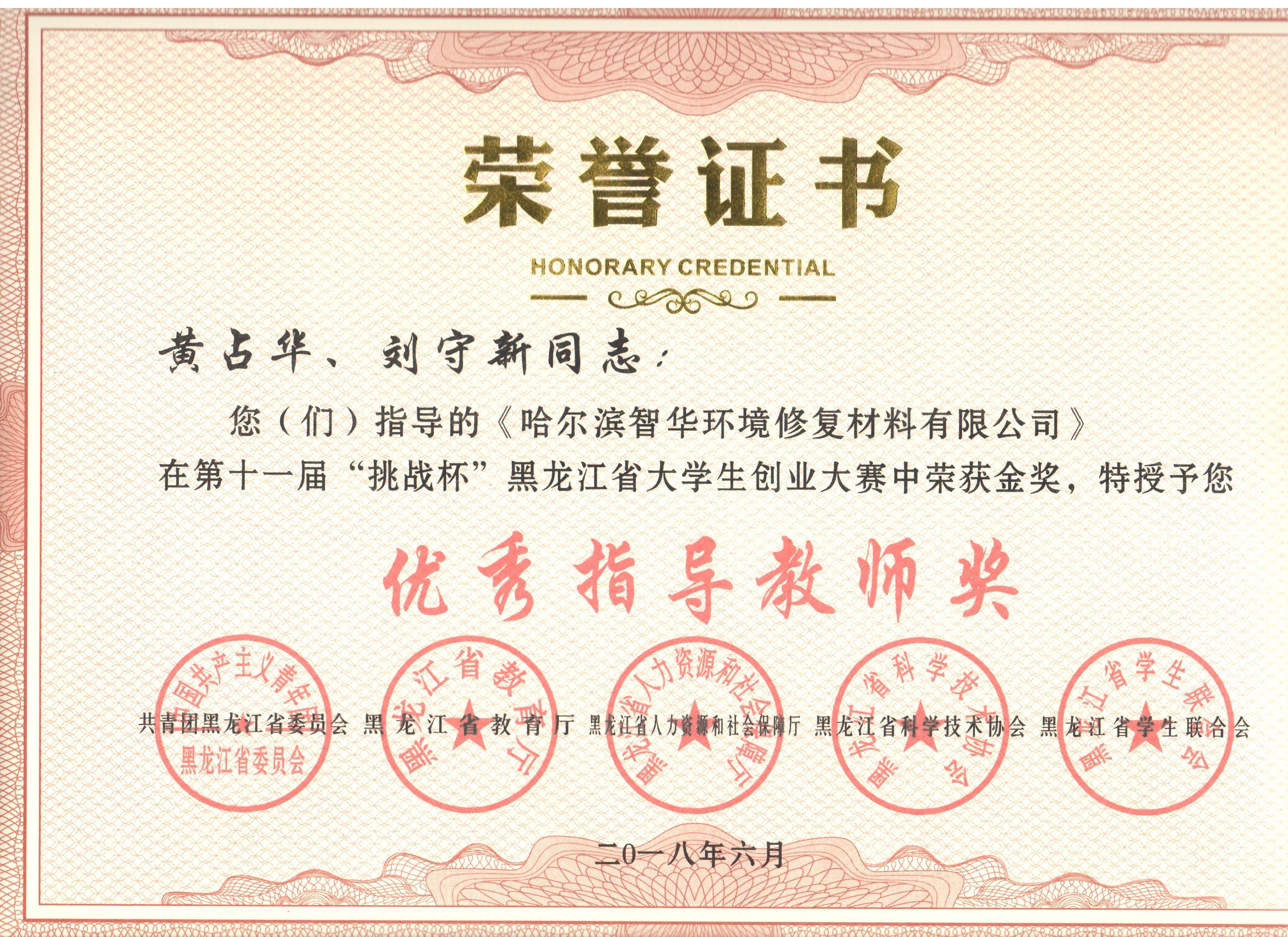 第十一届挑战杯黑龙江省大学生创业大赛优秀指导教师奖